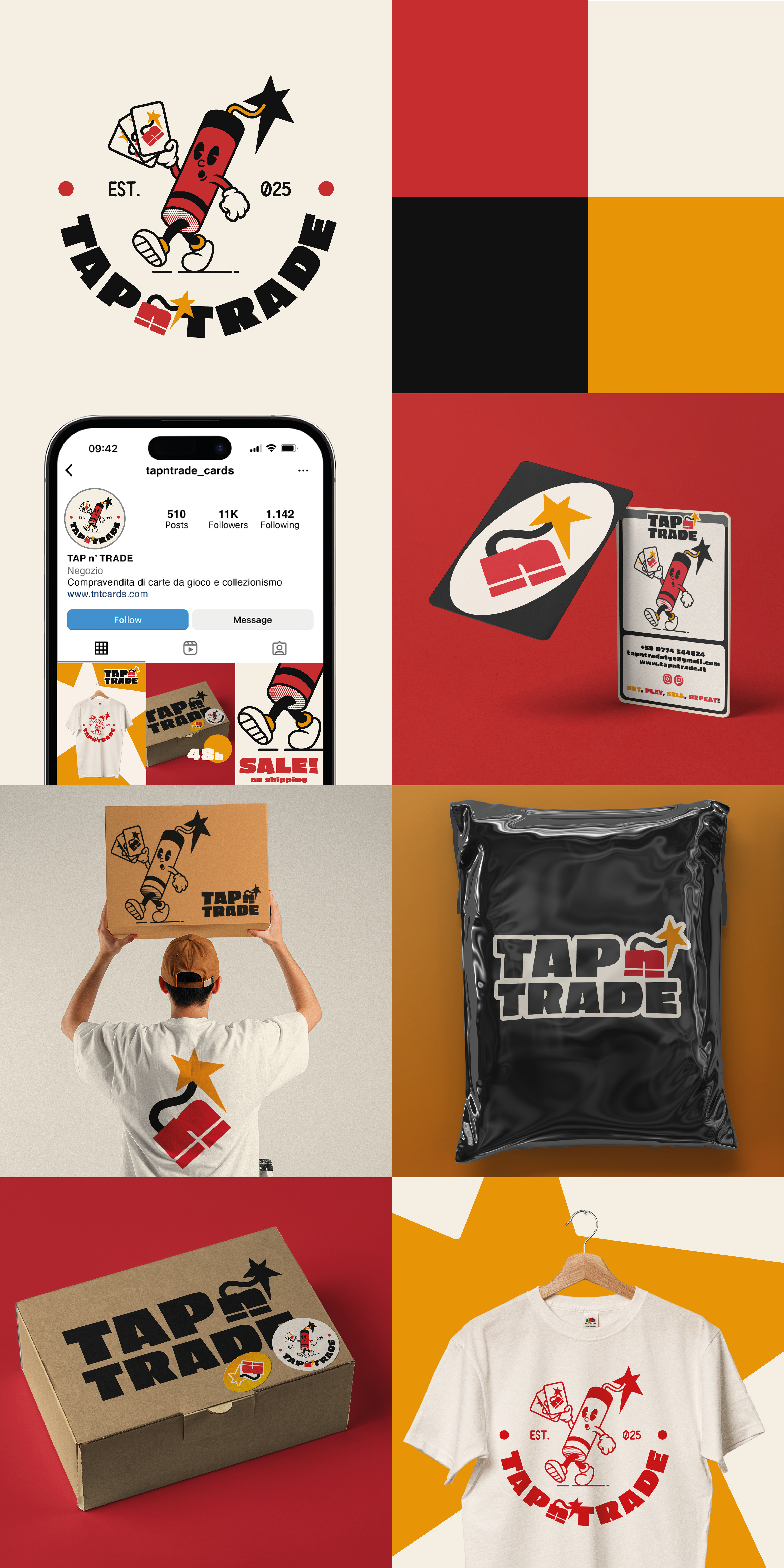 Creazione del branding dal logo dinamico al puppett mascotte del brand. Essendo un rivenditore di carte da gioco abbiamo voluto avere un look accattivante che si presta ad un branding forte per un mirato target nerd.